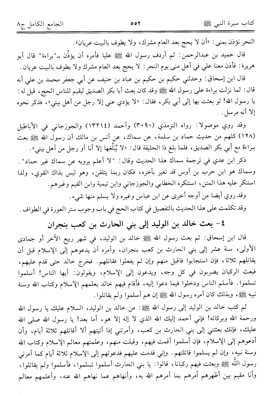 ٤ - بعث خالد بن الوليد إلى بني الحارث بن كعب بنجران