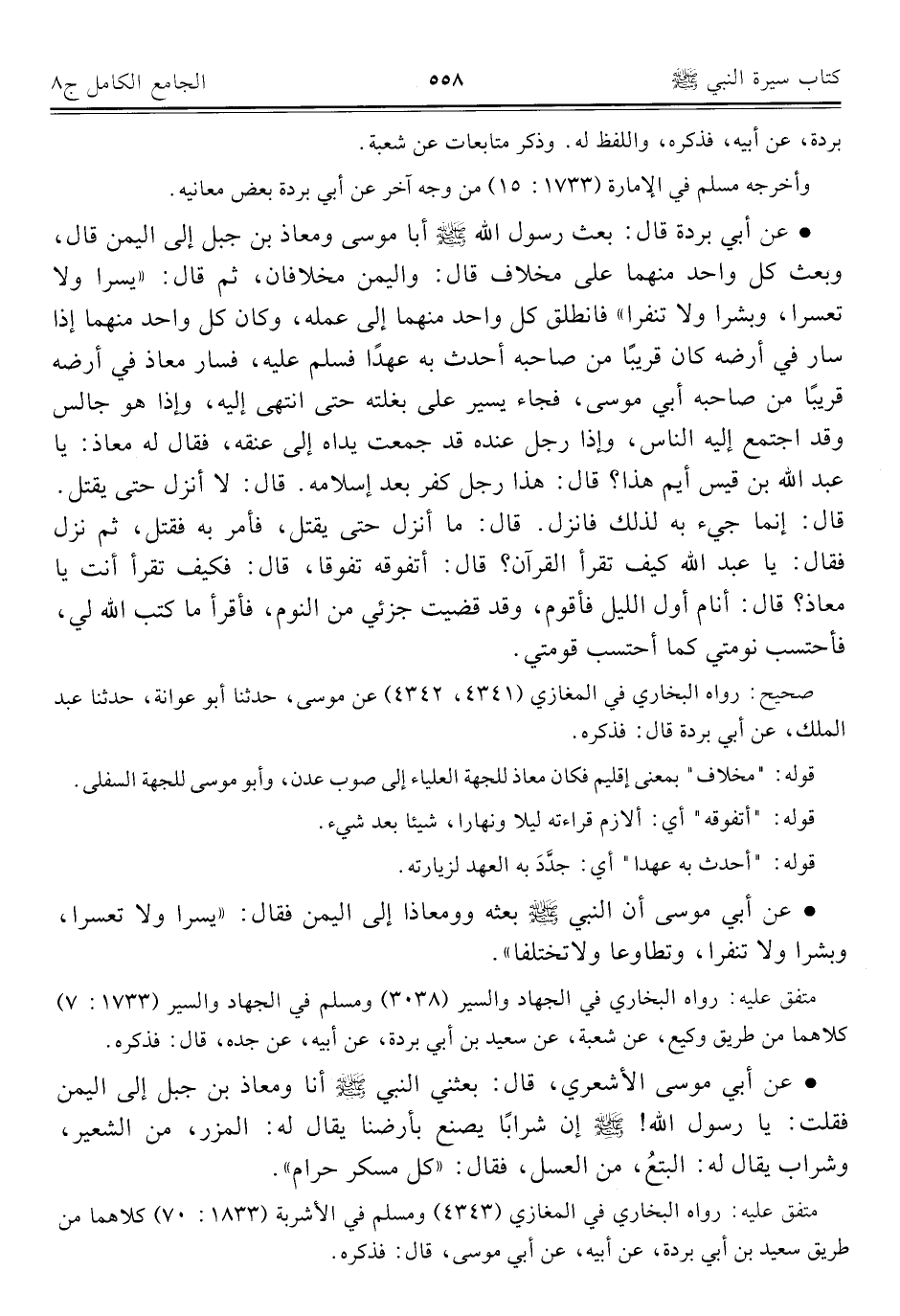 كتاب الجامع الكامل في الحديث الصحيح الشامل المرتب على أبواب الفقه (اسم الجزء: 8)