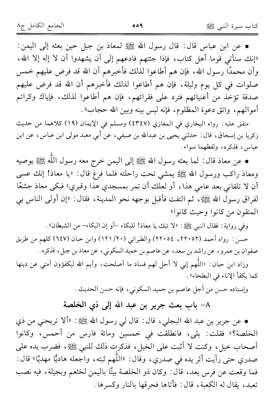كتاب الجامع الكامل في الحديث الصحيح الشامل المرتب على أبواب الفقه (اسم الجزء: 8)