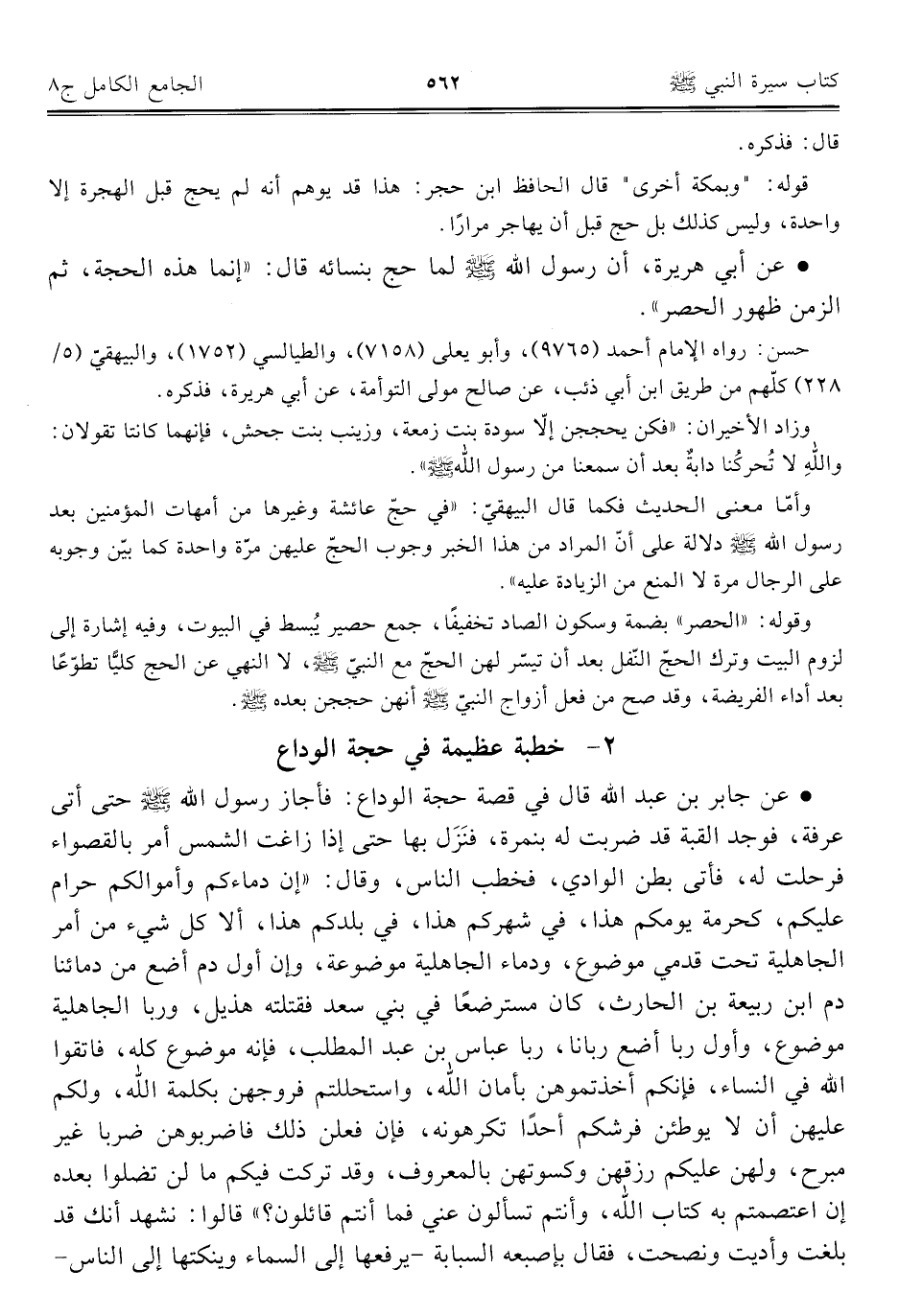 كتاب الجامع الكامل في الحديث الصحيح الشامل المرتب على أبواب الفقه (اسم الجزء: 8)