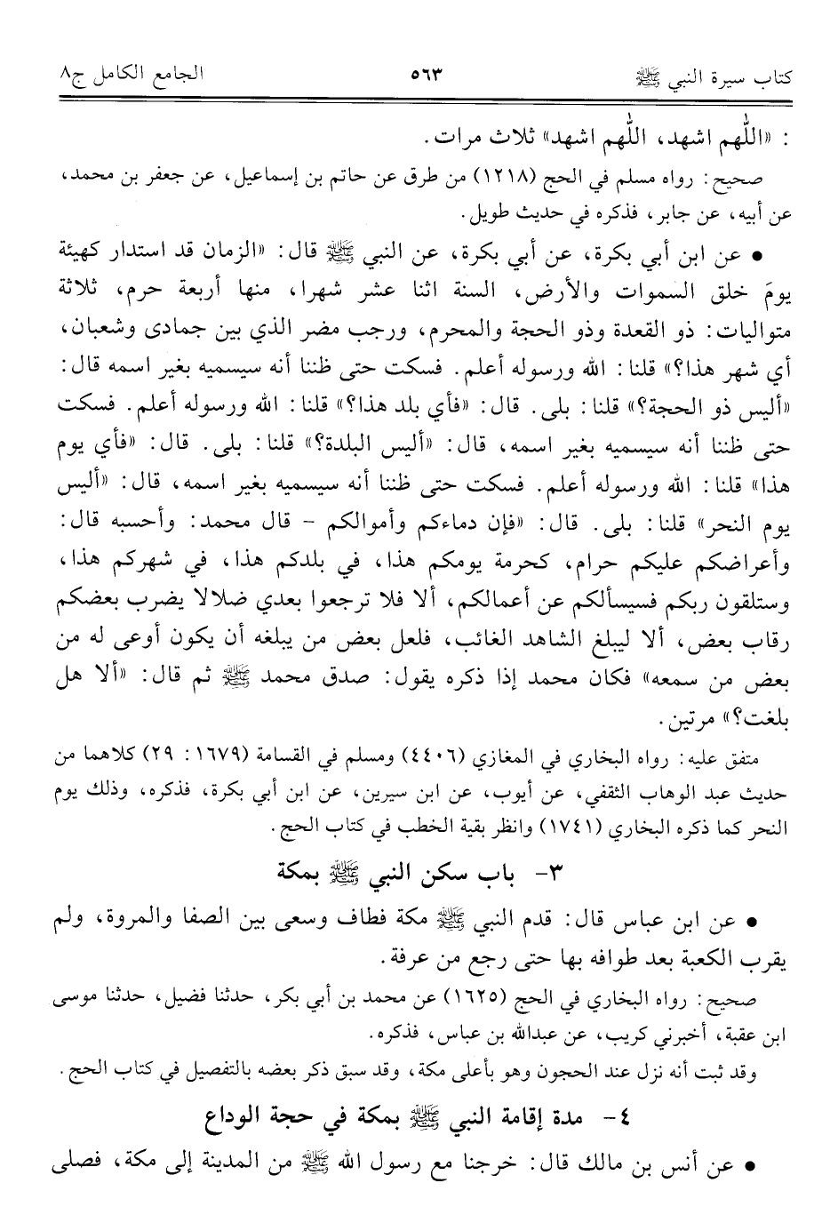 كتاب الجامع الكامل في الحديث الصحيح الشامل المرتب على أبواب الفقه (اسم الجزء: 8)