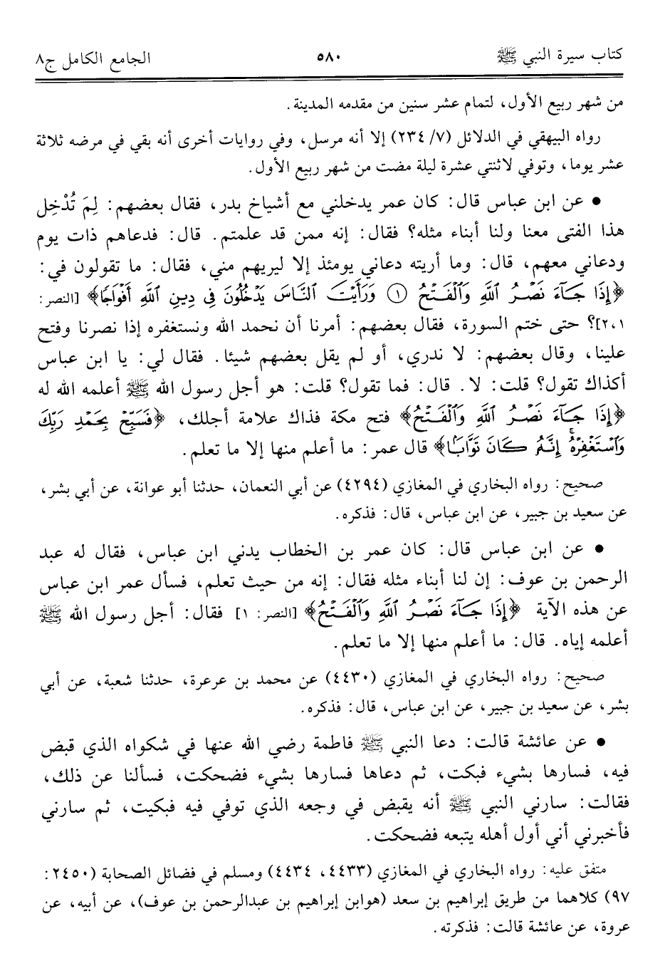 كتاب الجامع الكامل في الحديث الصحيح الشامل المرتب على أبواب الفقه (اسم الجزء: 8)