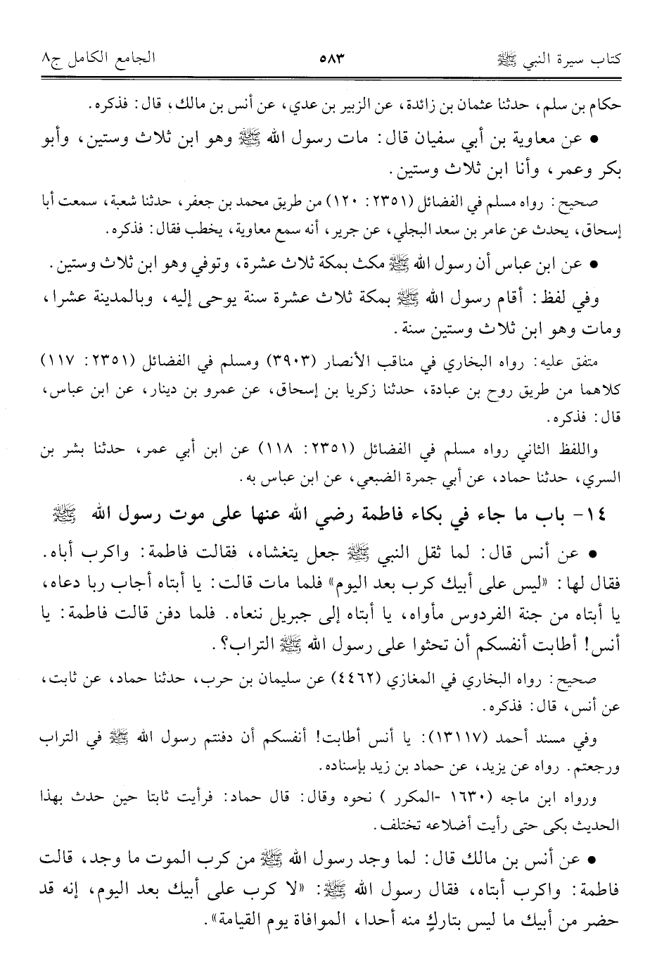 كتاب الجامع الكامل في الحديث الصحيح الشامل المرتب على أبواب الفقه (اسم الجزء: 8)