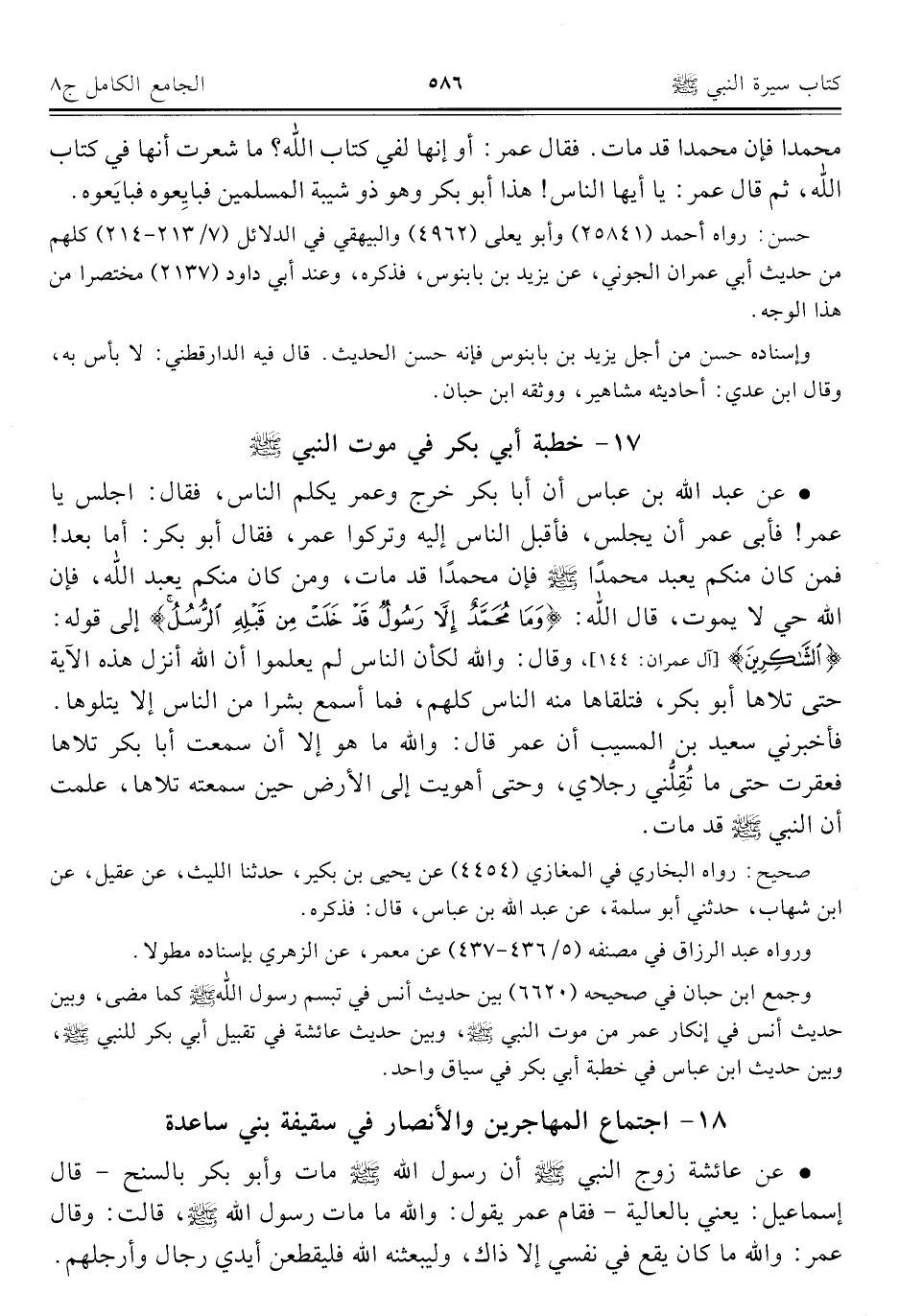 ١٧ - خطبة أبي بكر في موت النبي - صلى الله عليه وسلم -