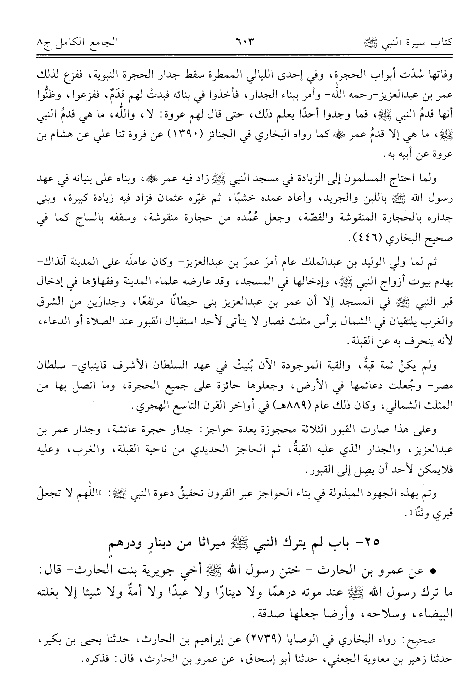 ٢٥ - باب لم يترك النبي - صلى الله عليه وسلم - ميراثا من دينارٍ ودرهمٍ