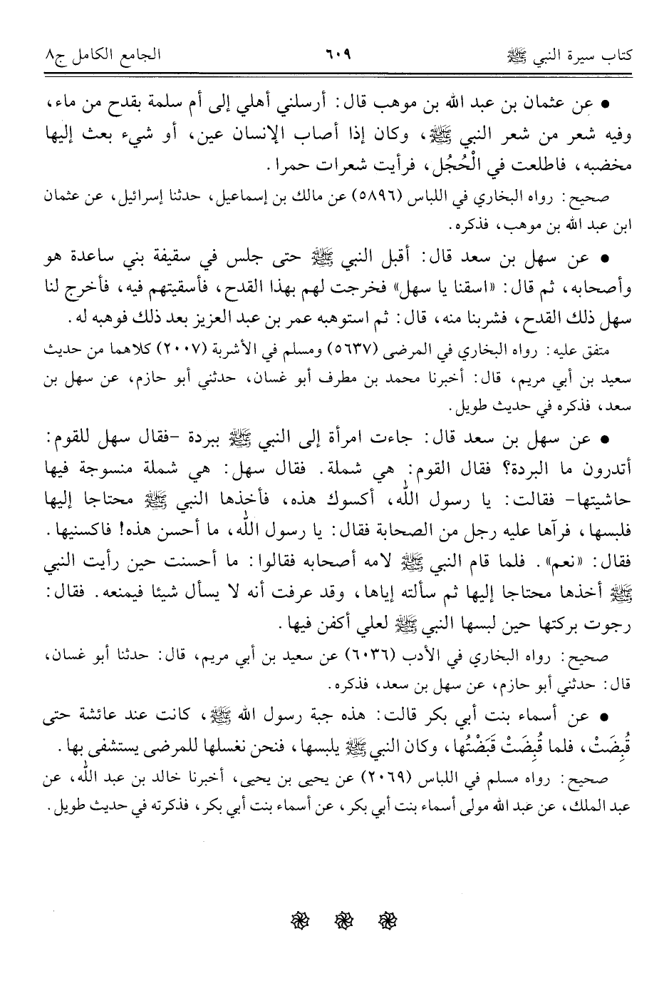 كتاب الجامع الكامل في الحديث الصحيح الشامل المرتب على أبواب الفقه (اسم الجزء: 8)