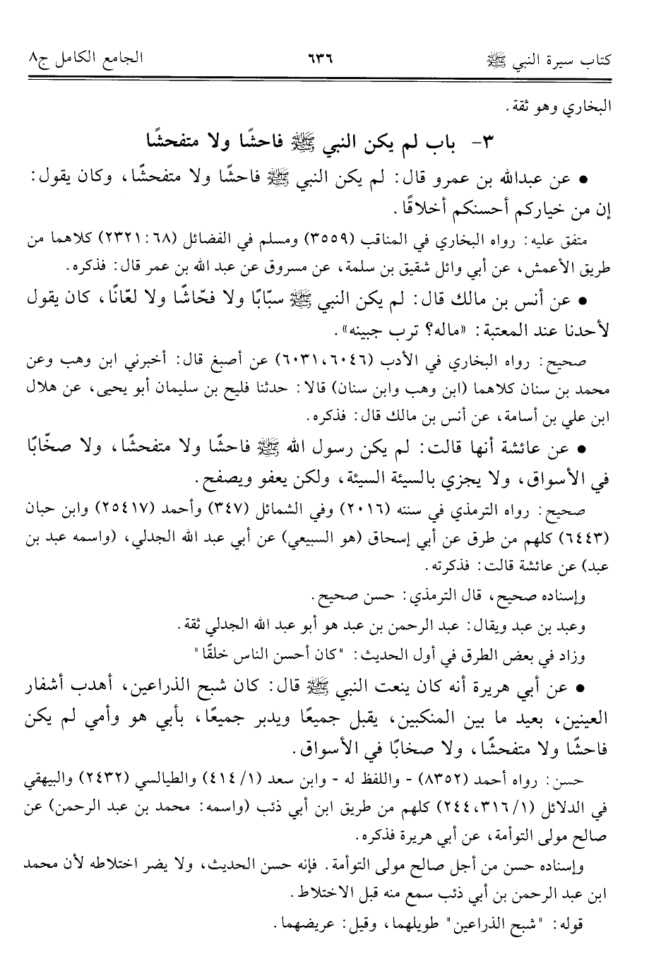 كتاب الجامع الكامل في الحديث الصحيح الشامل المرتب على أبواب الفقه (اسم الجزء: 8)