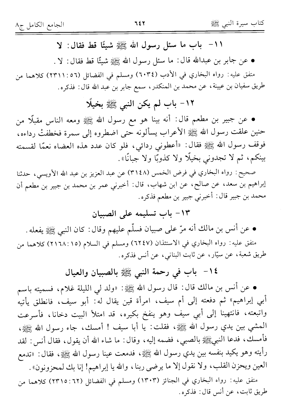 كتاب الجامع الكامل في الحديث الصحيح الشامل المرتب على أبواب الفقه (اسم الجزء: 8)