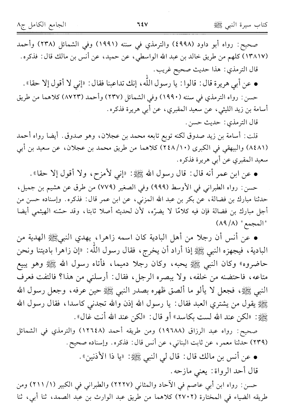 كتاب الجامع الكامل في الحديث الصحيح الشامل المرتب على أبواب الفقه (اسم الجزء: 8)