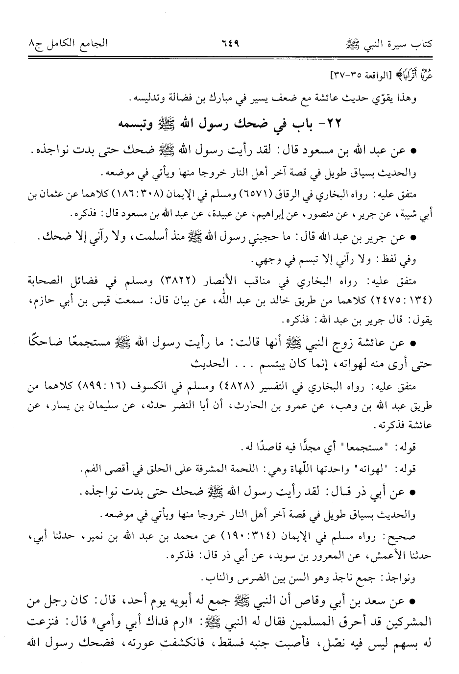 • عن عبد الله بن مسعود قال: لقد رأيت رسول الله - صلى الله عليه وسلم - ضحك حتى بدت نواجذه.