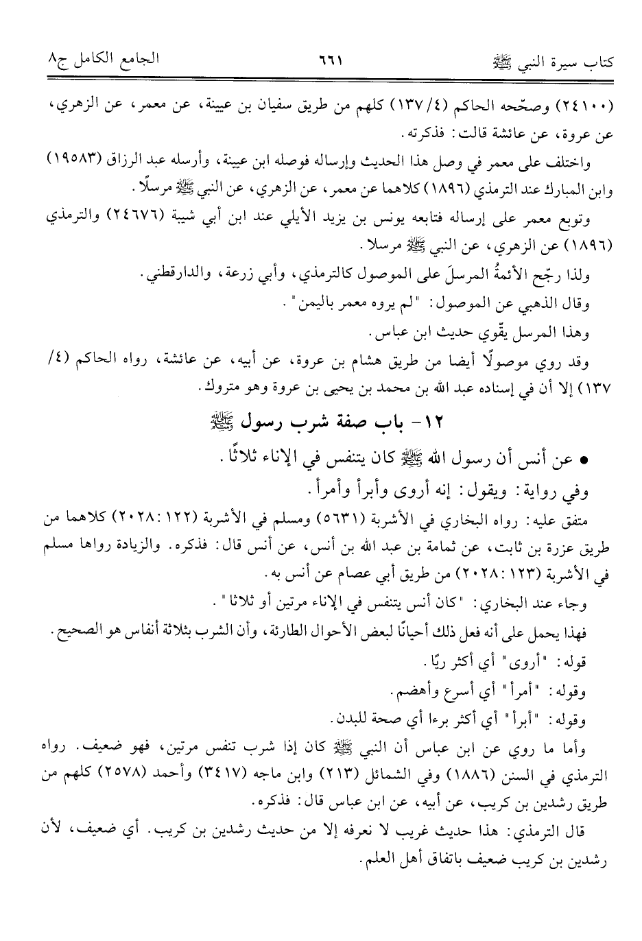 ١٢ - باب صفة شرب رسول - صلى الله عليه وسلم -.