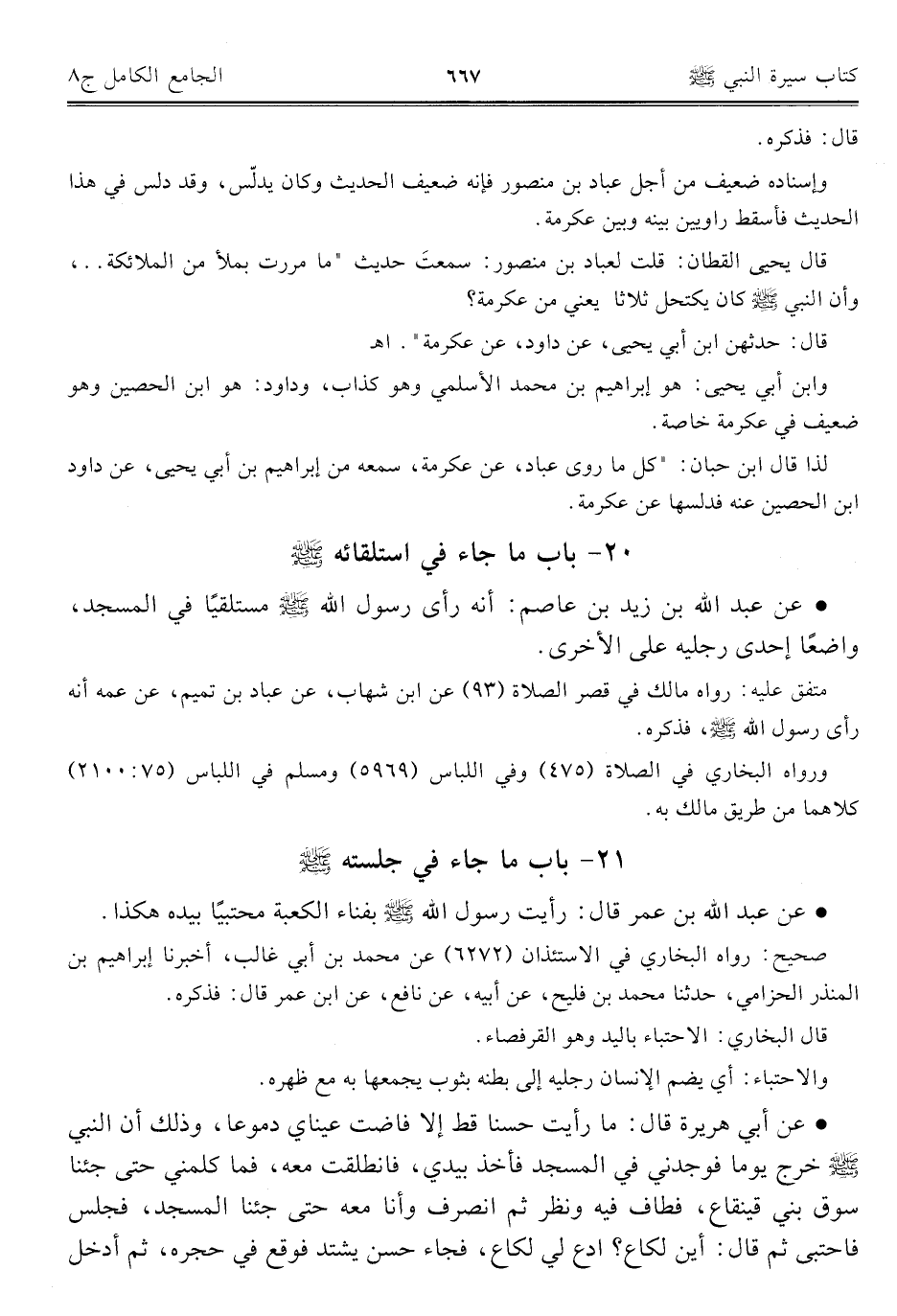 ٢٠ - باب ما جاء في استلقائه - صلى الله عليه وسلم -