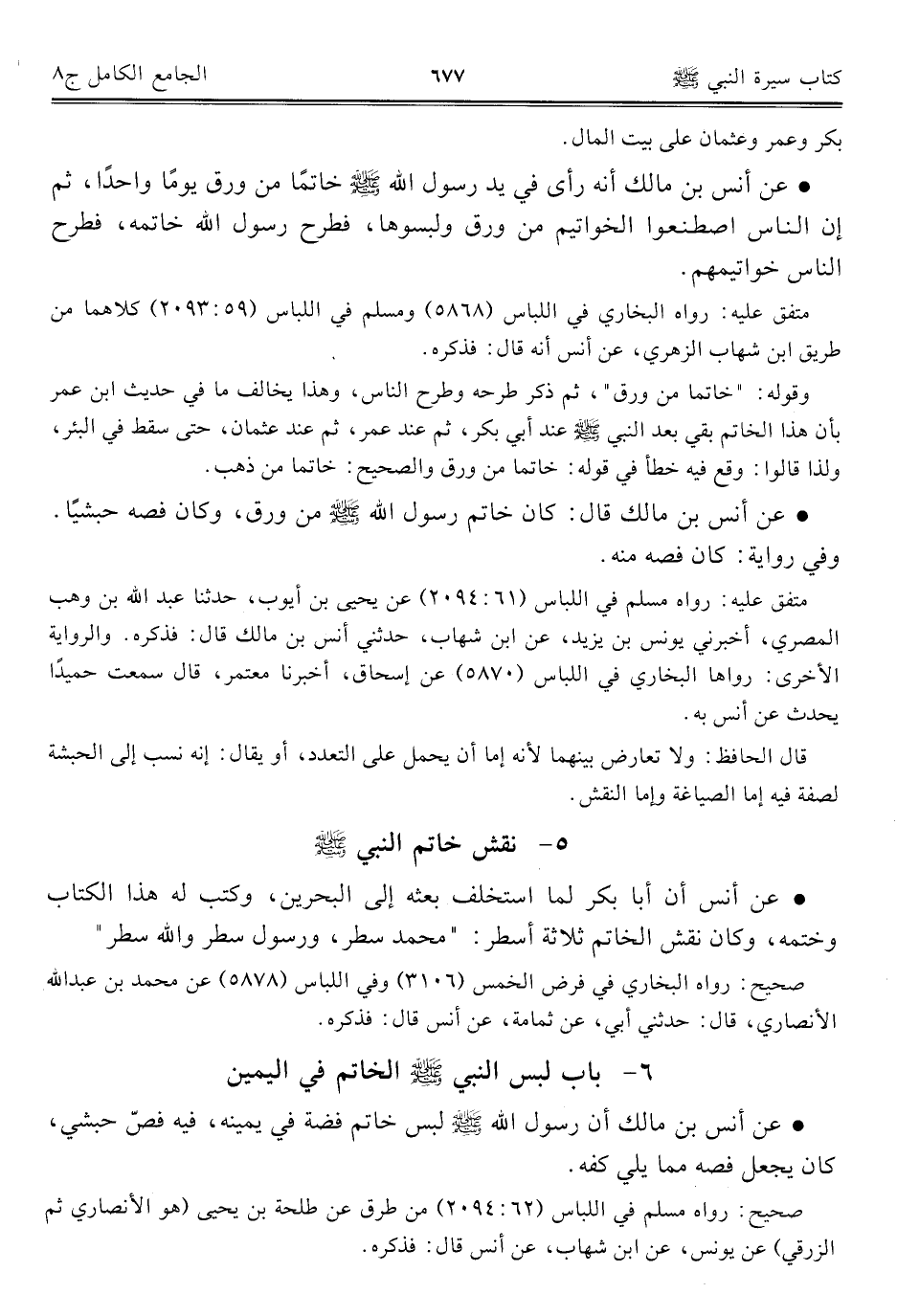 كتاب الجامع الكامل في الحديث الصحيح الشامل المرتب على أبواب الفقه (اسم الجزء: 8)