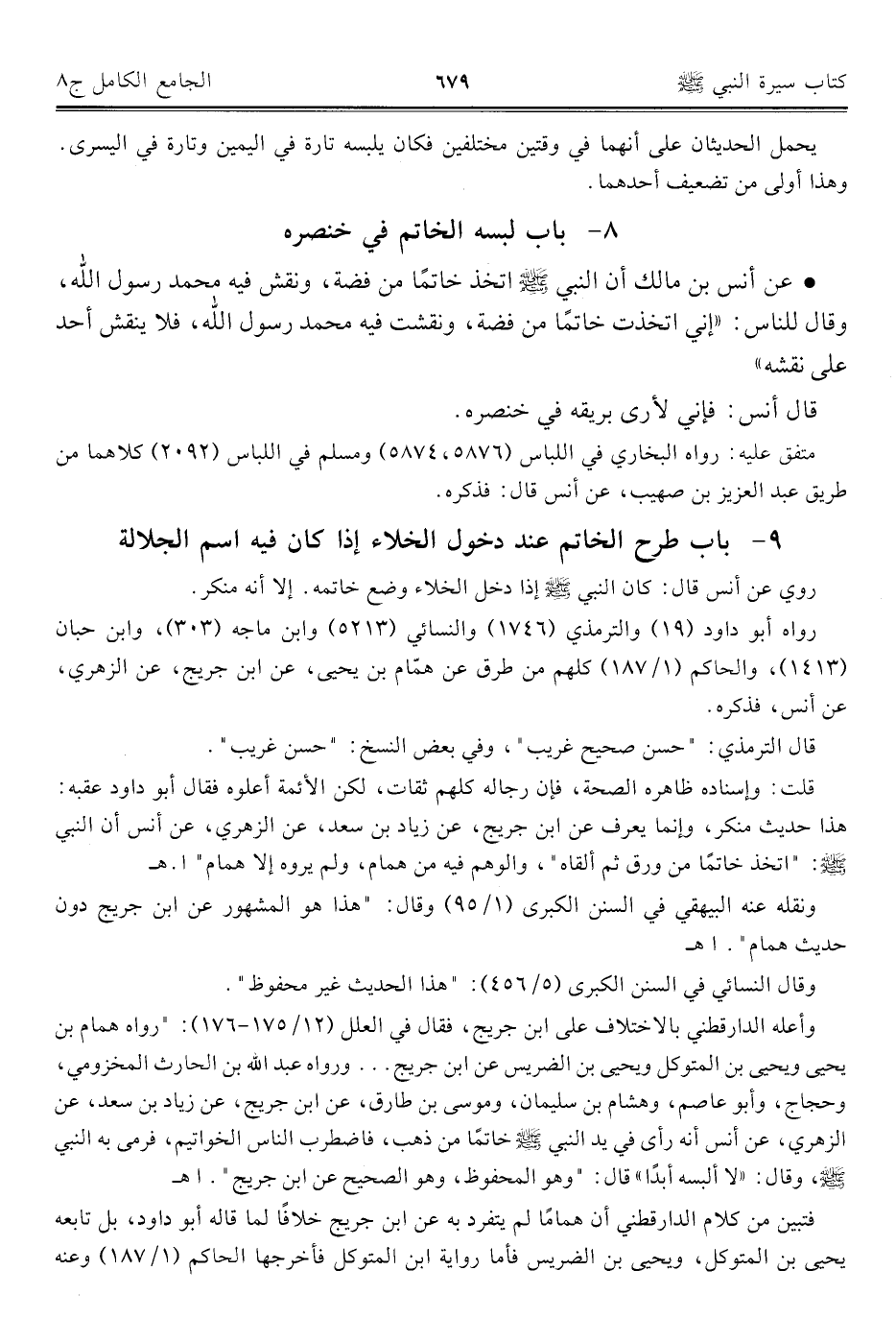 كتاب الجامع الكامل في الحديث الصحيح الشامل المرتب على أبواب الفقه (اسم الجزء: 8)