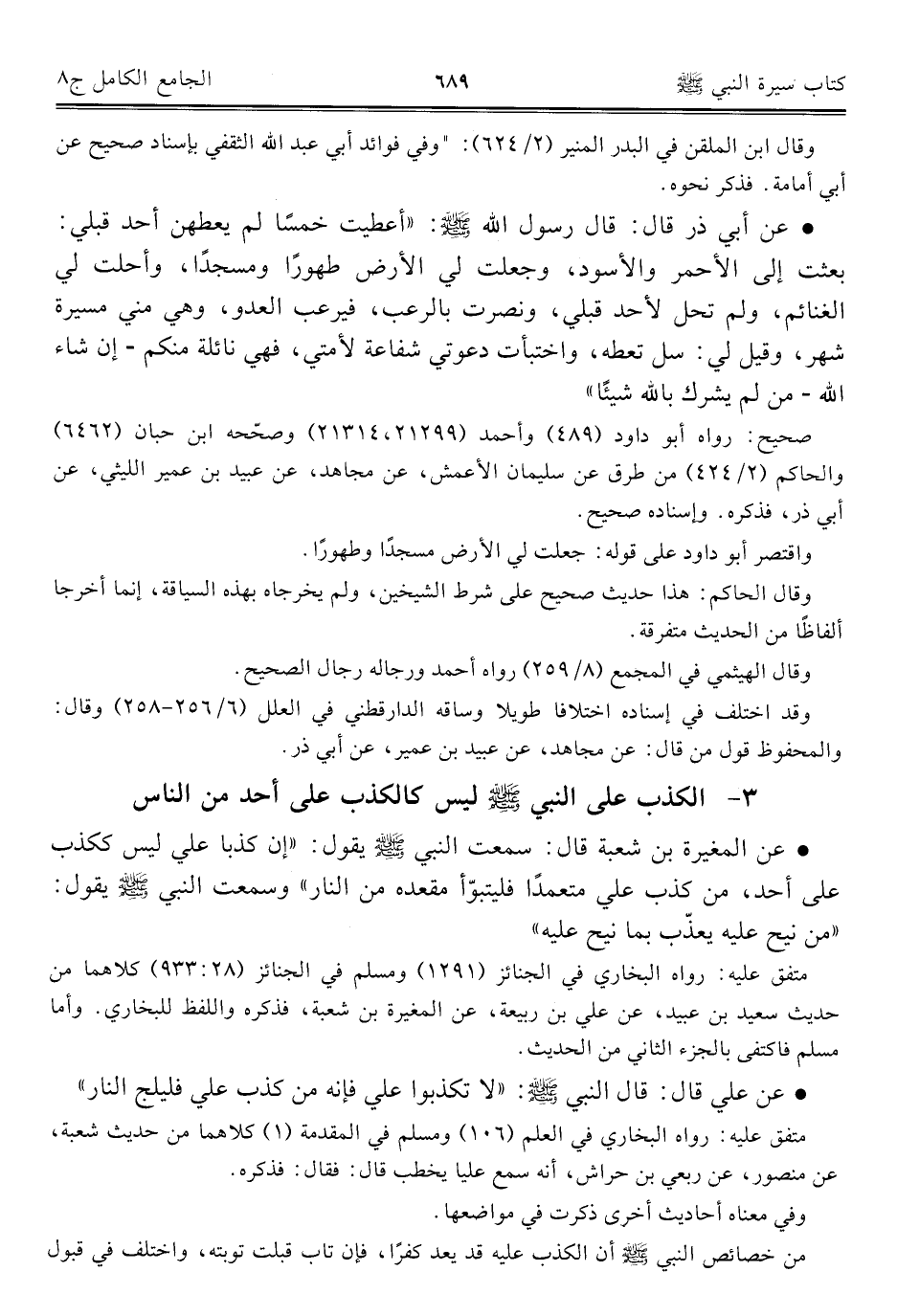 كتاب الجامع الكامل في الحديث الصحيح الشامل المرتب على أبواب الفقه (اسم الجزء: 8)