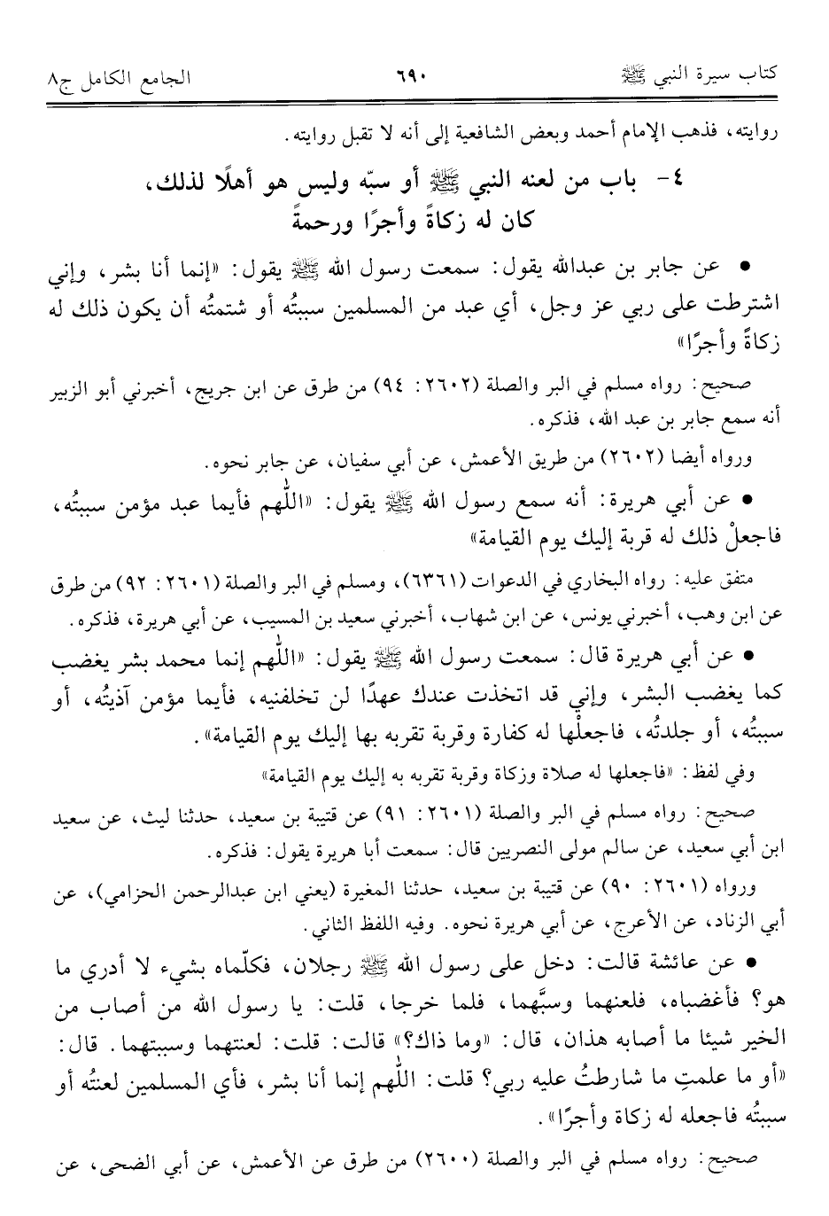 • عن جابر بن عبد الله يقول: سمعت رسول الله - صلى الله عليه وسلم - يقول: "إنما أنا بشر، وإني اشترطت على ربي عز وجل، أي عبد من المسلمين سببتُه أو شتمتُه أن يكون ذلك له زكاةً وأجرًا".