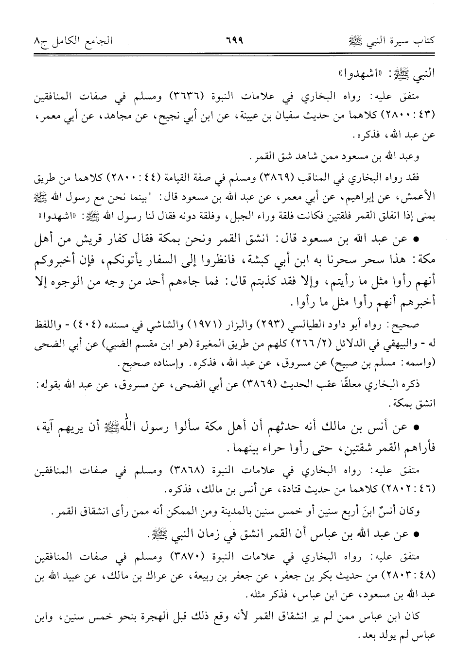 وعبد الله بن مسعود ممن شاهد شق القمر.