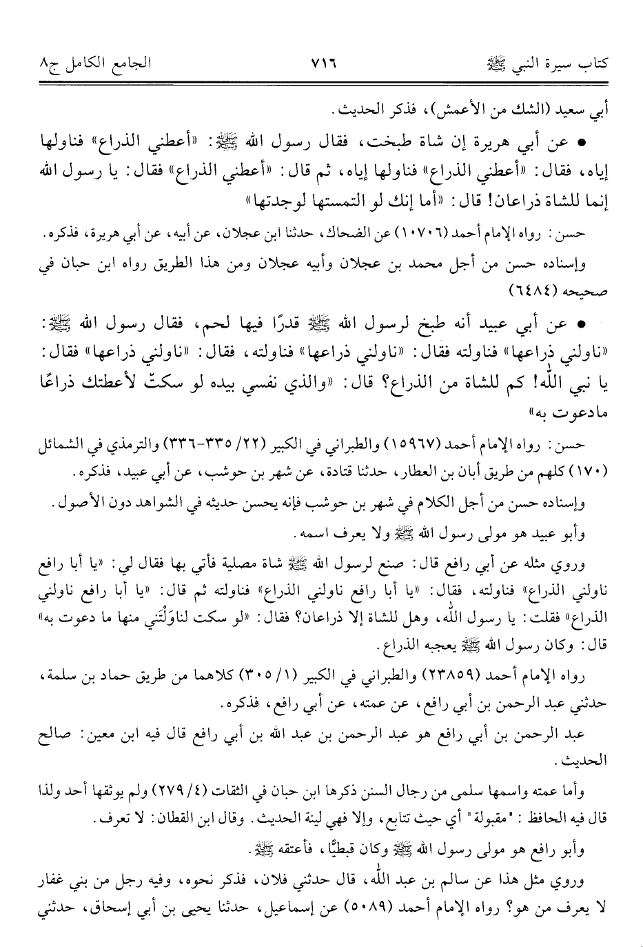عبد الرحمن بن أبي رافع هو عبد الرحمن بن عبد الله بن أبي رافع قال فيه ابن معين: صالح الحديث.