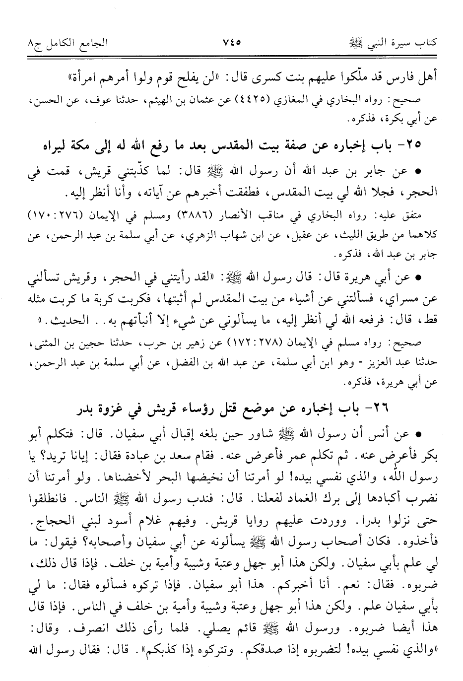 كتاب الجامع الكامل في الحديث الصحيح الشامل المرتب على أبواب الفقه (اسم الجزء: 8)