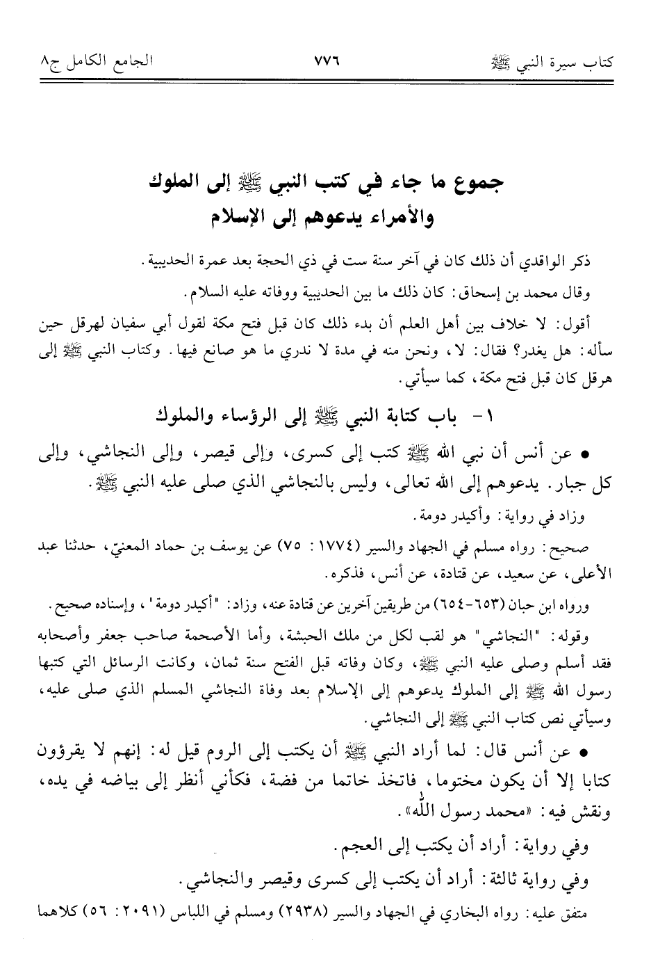 كتاب الجامع الكامل في الحديث الصحيح الشامل المرتب على أبواب الفقه (اسم الجزء: 8)