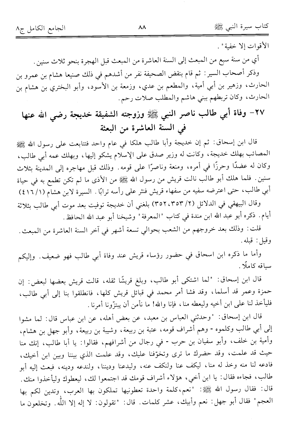 ٢٧ - وفاة أبي طالب ناصر النبي - صلى الله عليه وسلم - وزوجته الشفيقة خديجة رضي الله عنها في السنة العاشرة من البعثة