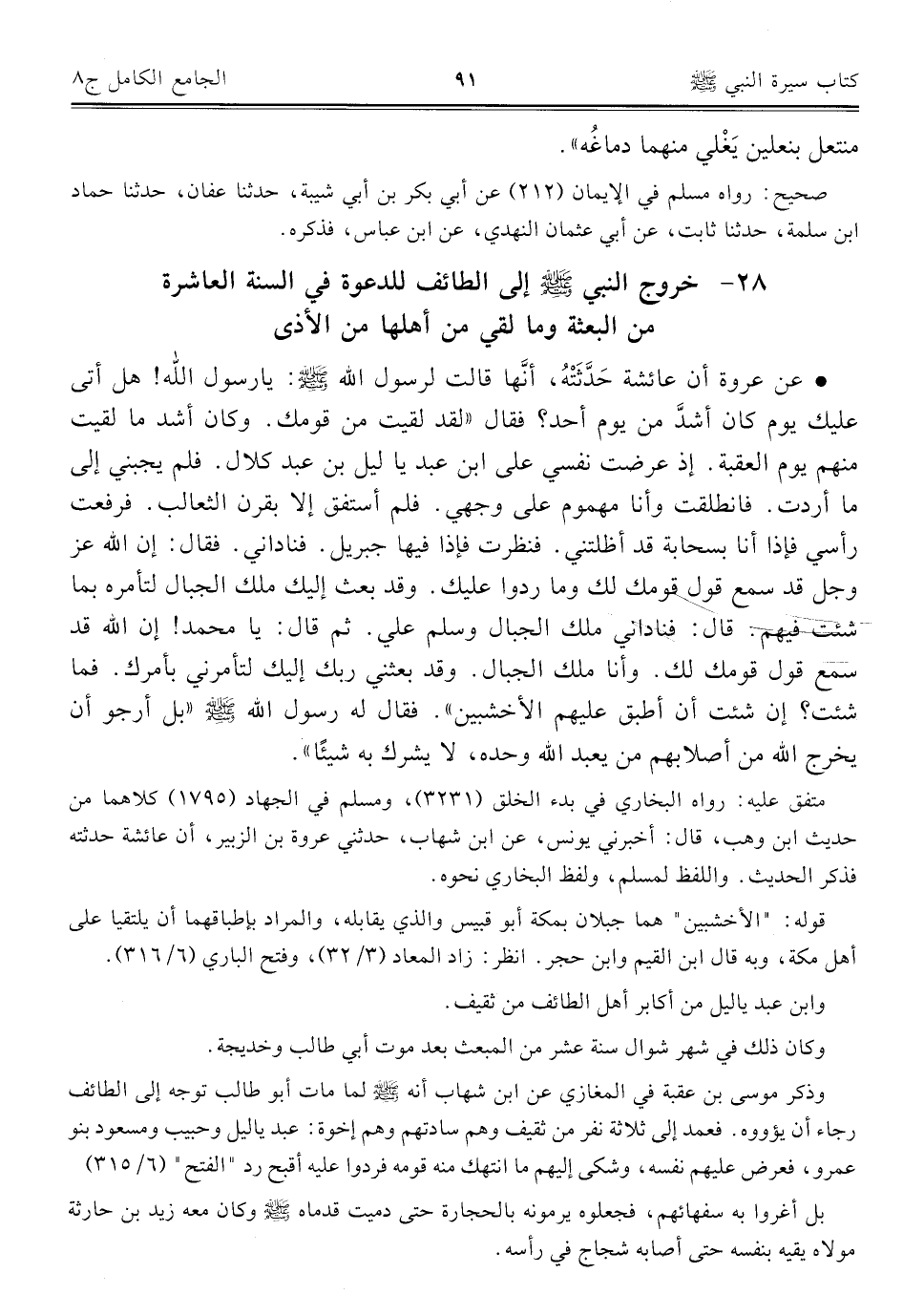 ٢٨ - خروج النبي - صلى الله عليه وسلم - إلى الطائف للدعوة في السنة العاشرة من البعثة وما لقي من أهلها من الأذى