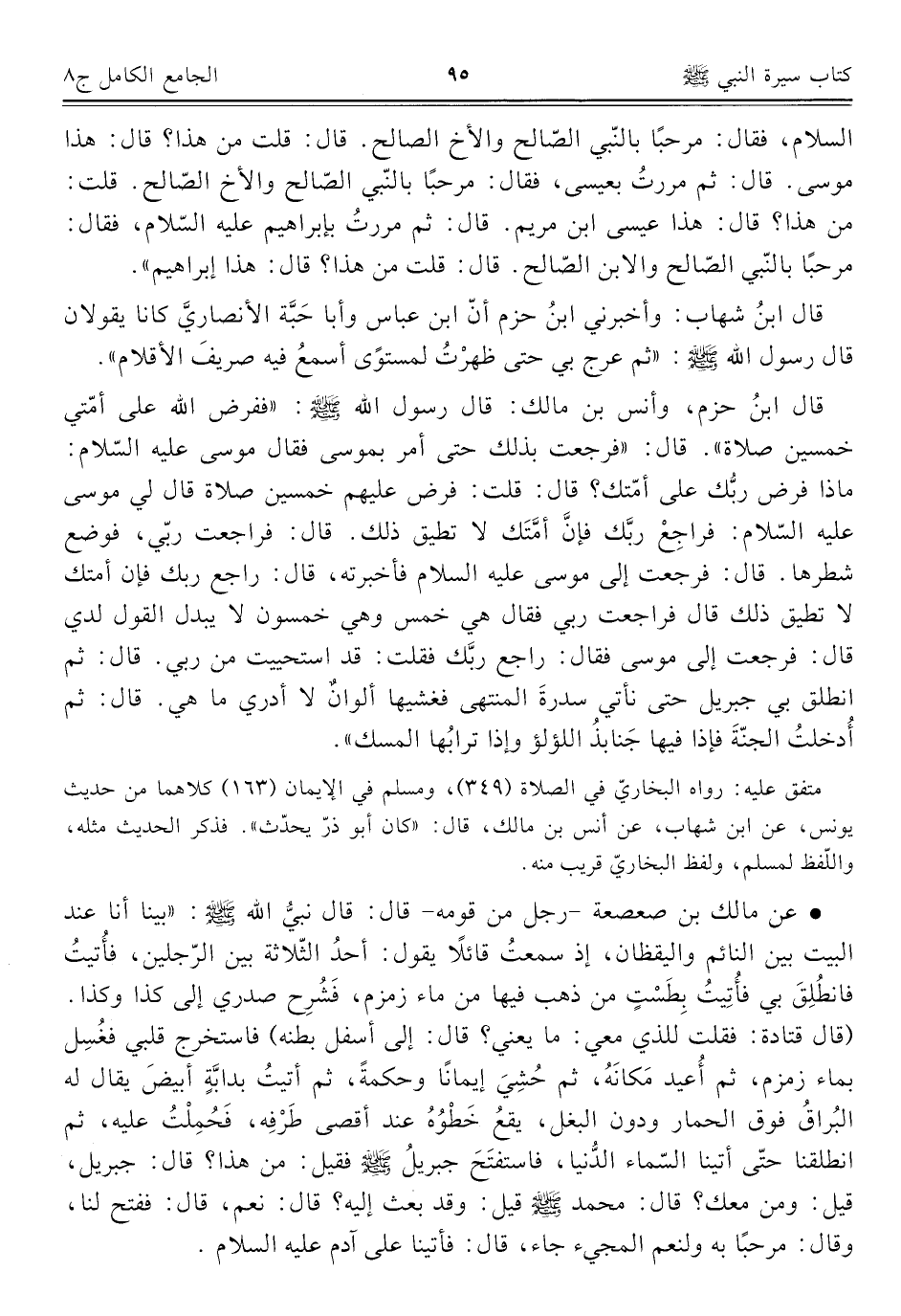 متفق عليه: رواه البخاريّ في الصلاة (٣٤٩)، ومسلم في الإيمان (١٦٣) كلاهما من حديث يونس، عن ابن شهاب، عن أنس بن مالك، قال: "كان أبو ذرّ يحدّث". فذكر الحديث مثله، واللّفظ لمسلم، ولفظ البخاريّ قريب منه.