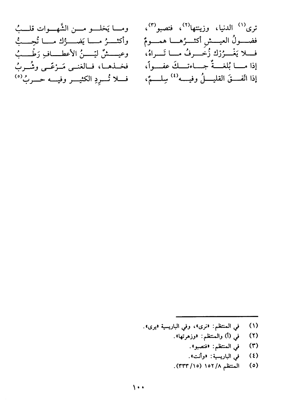 فُضُولُ الْعَيْشِ أَكْثَرُهَا هُمُومٌ ... وَأَكْثَرُ مَا يَضُرُّكَ مَا تُحِبُّ