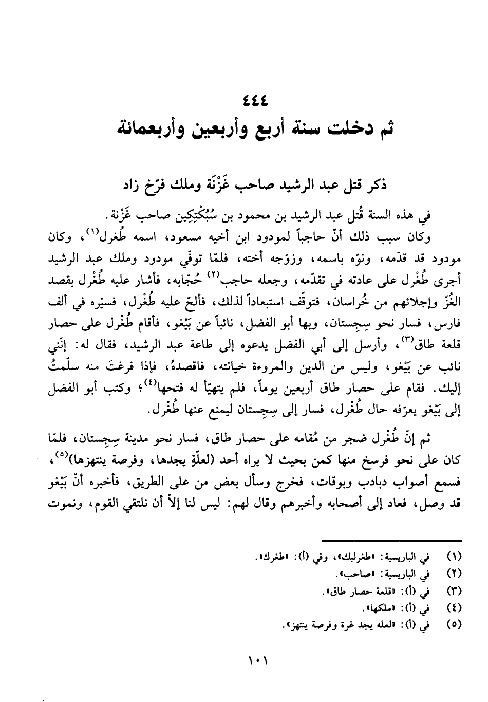 ثُمَّ دَخَلَتْ سَنَةُ أَرْبَعٍ وَأَرْبَعِينَ وَأَرْبَعِمِائَةٍ