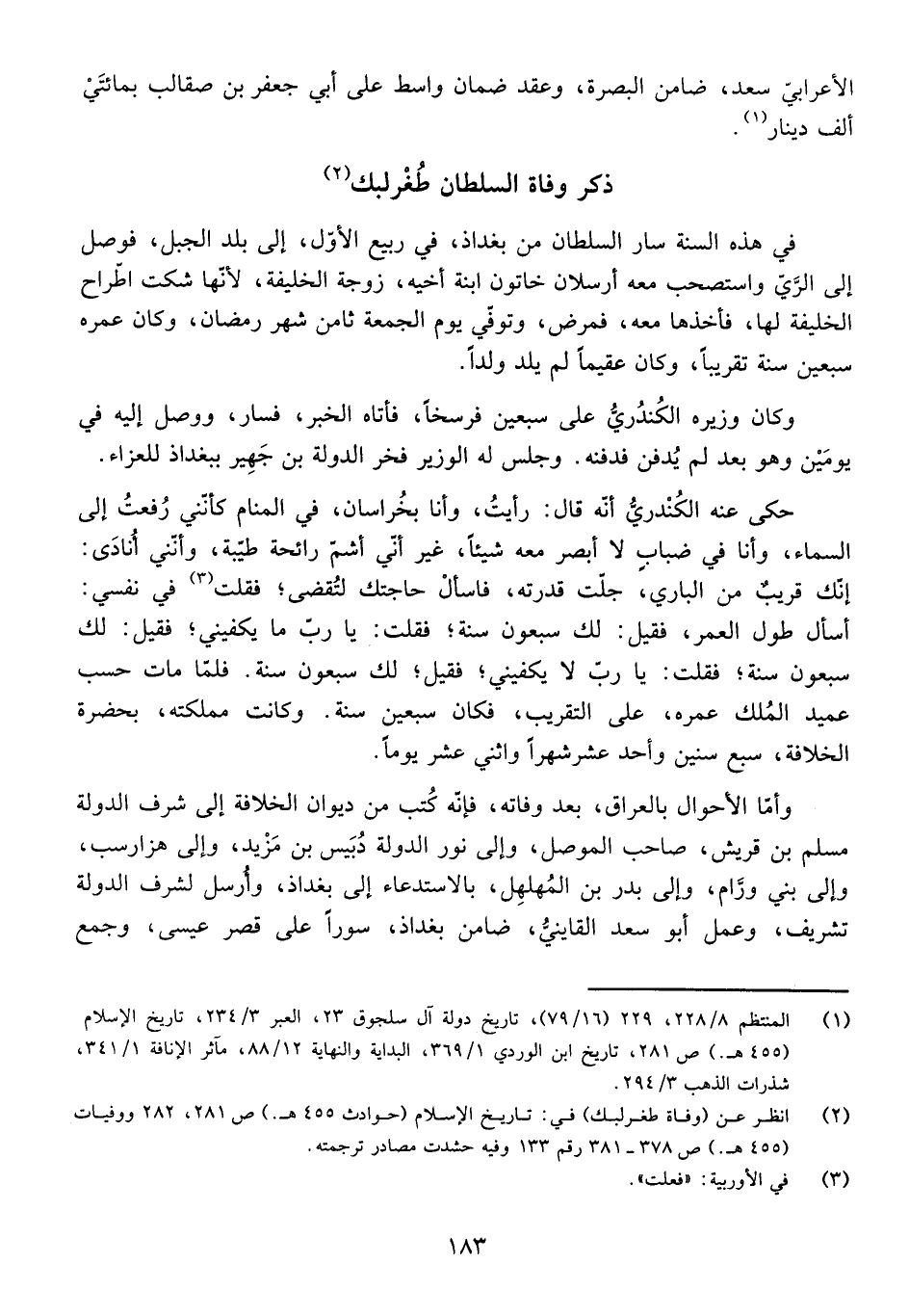 ذِكْرُ وَفَاةِ السُّلْطَانِ طُغْرُلْبِكْ.