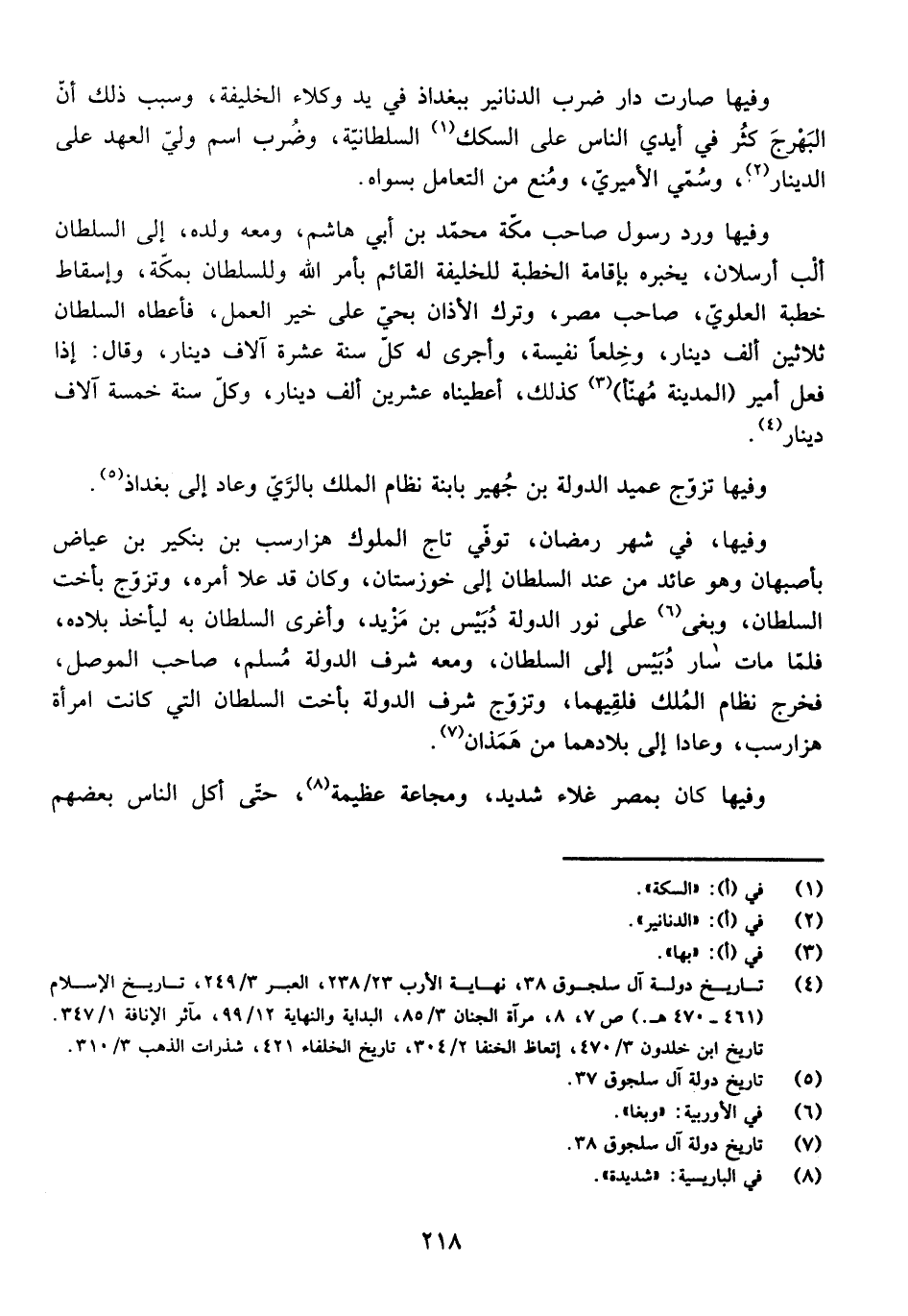 وَفِيهَا صَارَتْ دَارُ ضَرْبِ الدَّنَانِيرِ بِبَغْدَاذَ فِي يَدِ وُكَلَاءِ الْخَلِيفَةِ، وَسَبَبُ ذَلِكَ أَنَّ الْبَهْرَجَ كَثُرَ فِي أَيْدِي النَّاسِ عَلَى السِّكَكِ السُّلْطَانِيَّةِ وَضُرِبَ اسْمُ وَلِيِّ الْعَهْدِ عَلَى الدِّينَارِ وَسُمِّيَ الْأَمِيرِيَّ وَمُنِعَ مِنَ التَّعَامُلِ بِسِوَاهُ.
