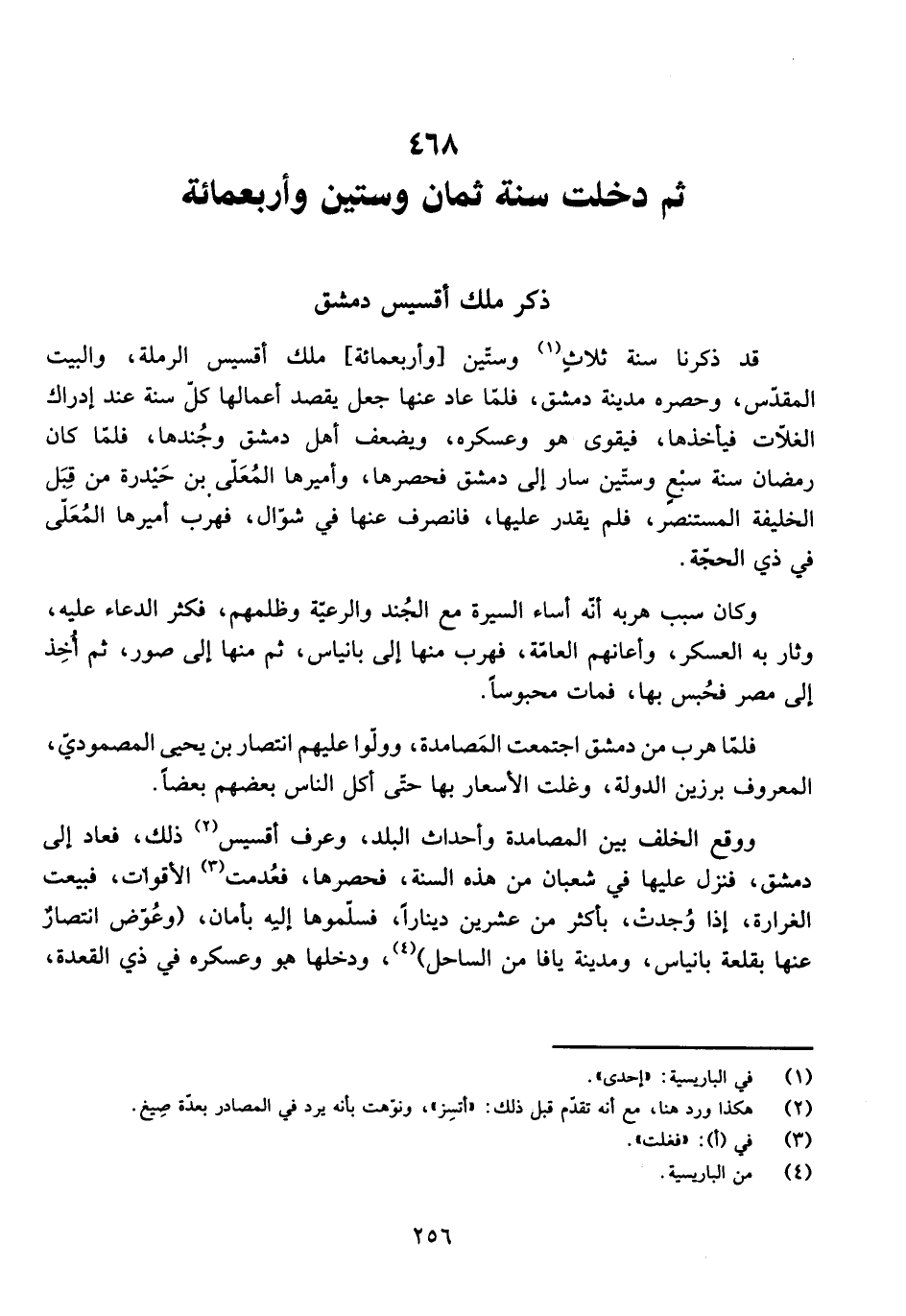 [ثُمَّ دَخَلَتْ سَنَةُ ثَمَانٍ وَسِتِّينَ وَأَرْبَعِمِائَةٍ.]