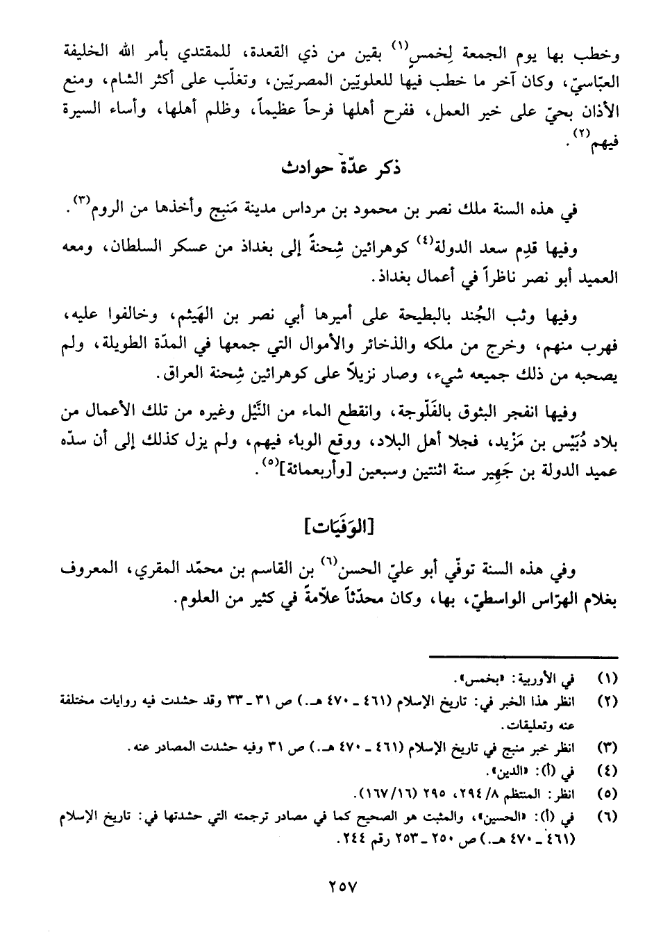 وَفِي هَذِهِ السَّنَةِ تُوُفِّيَ أَبُو عَلِيٍّ الْحَسَنُ بْنُ الْقَاسِمِ بْنُ مُحَمَّدٍ الْمَقْرِيُّ، الْمَعْرُوفُ بِغُلَامِ الْهَرَّاسِ الْوَاسِطِيُّ، بِهَا، وَكَانَ مُحَدِّثًا عَلَّامَةً فِي كَثِيرٍ مِنَ الْعُلُومِ.