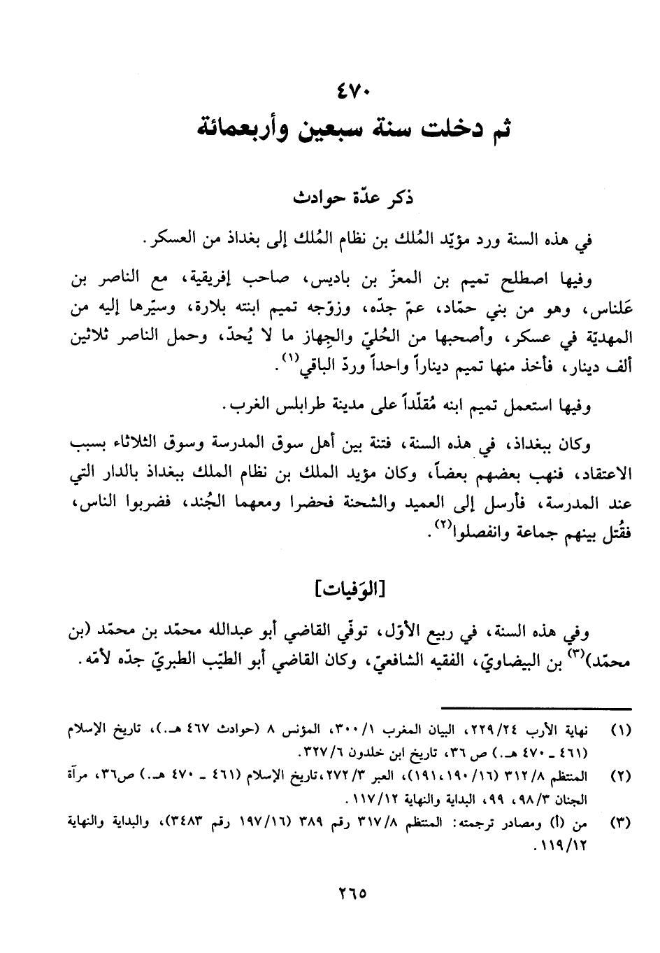 ثُمَّ دَخَلَتْ سَنَةُ سَبْعِينَ وَأَرْبَعِمِائَةٍ.