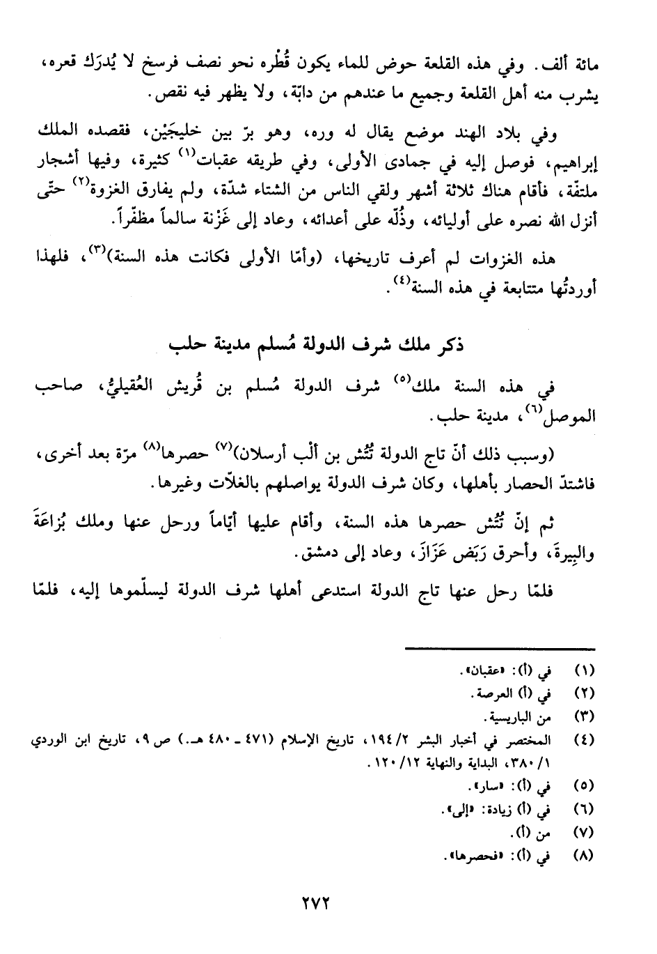 ذِكْرُ مُلْكِ شَرَفِ الدَّوْلَةِ مُسْلِمٌ مَدِينَةَ حَلَبَ.
