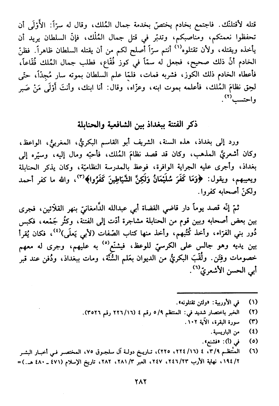 ذِكْرُ الْفِتْنَةِ بِبَغْدَاذَ بَيْنَ الشَّافِعِيَّةِ وَالْحَنَابِلَةِ.
