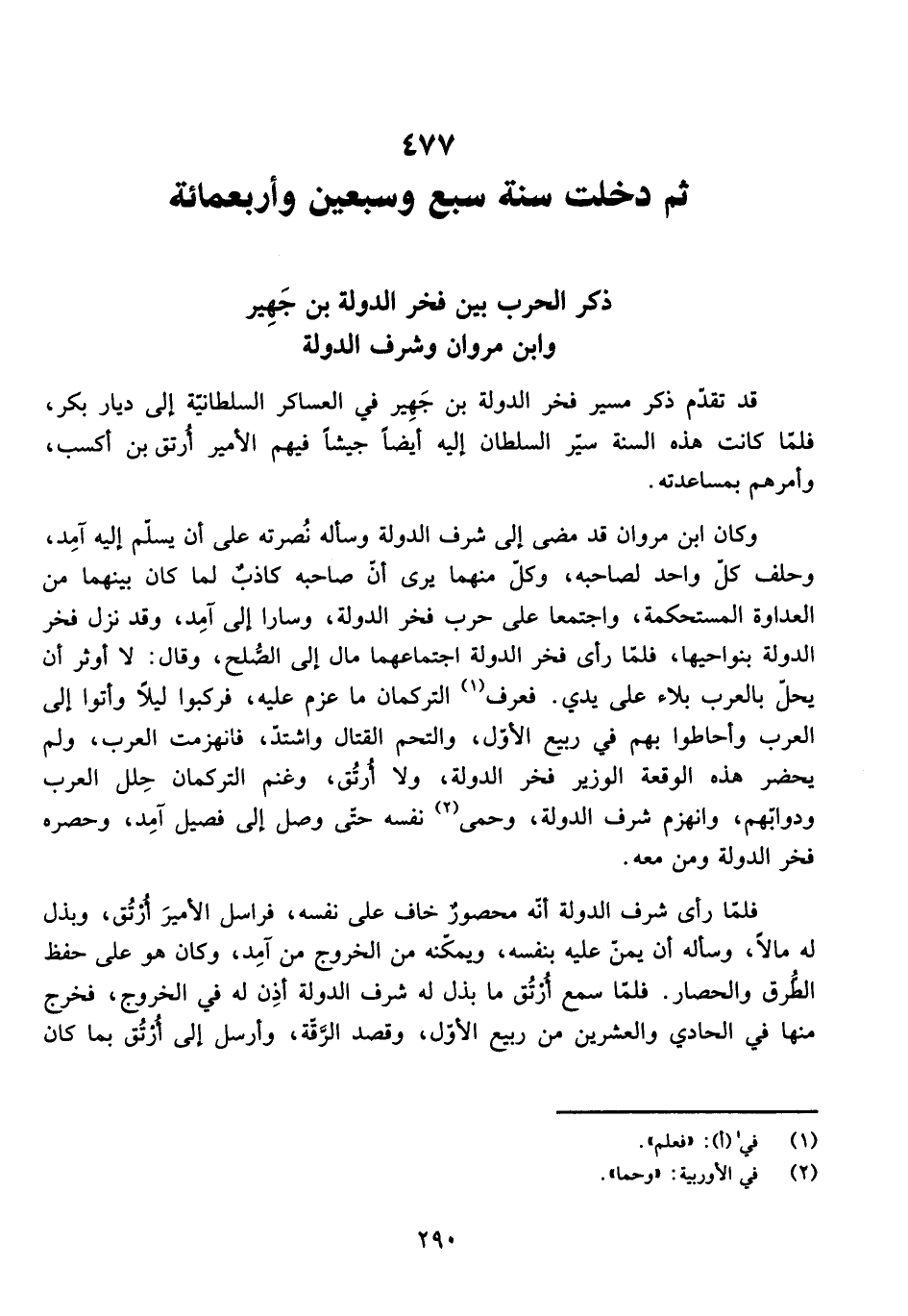 [ثُمَّ دَخَلَتْ سَنَةُ سَبْعٍ وَسَبْعِينَ وَأَرْبَعِمِائَةٍ.]