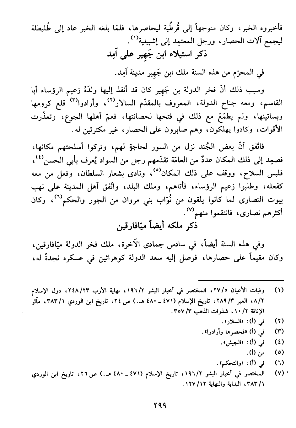 فِي الْمُحَرَّمِ مِنْ هَذِهِ السَّنَةِ مَلَكَ ابْنُ جَهِيرٍ آمِدَ.