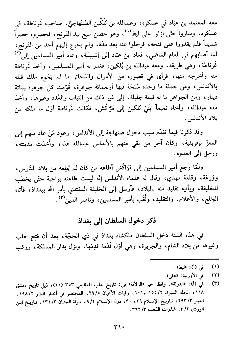 وَقَدْ ذَكَرْنَا فِيمَا تَقَدَّمَ سَبَبَ دُخُولِ صَنْهَاجَةَ إِلَى الْأَنْدَلُسِ، وَعَوْدِ مَنْ عَادَ مِنْهُمْ إِلَى الْمُعِزِّ بِإِفْرِيقِيَّةَ، وَكَانَ آخِرَ مَنْ بَقِيَ مِنْهُمْ بِالْأَنْدَلُسِ عَبْدُ اللَّهِ هَذَا، وَأُخِذَتْ مَدِينَتُهُ، وَرَحَلَ إِلَى الْعُدْوَةِ.