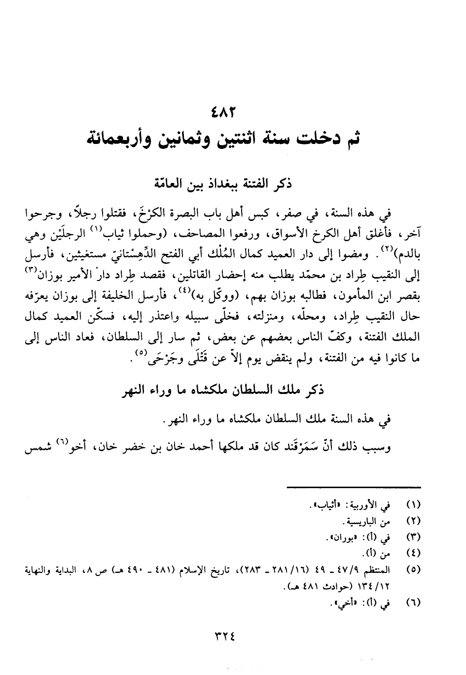 ثُمَّ دَخَلَتِ سَنَةُ اثْنَتَيْنِ وَثَمَانِينَ وَأَرْبَعِمِائَةٍ