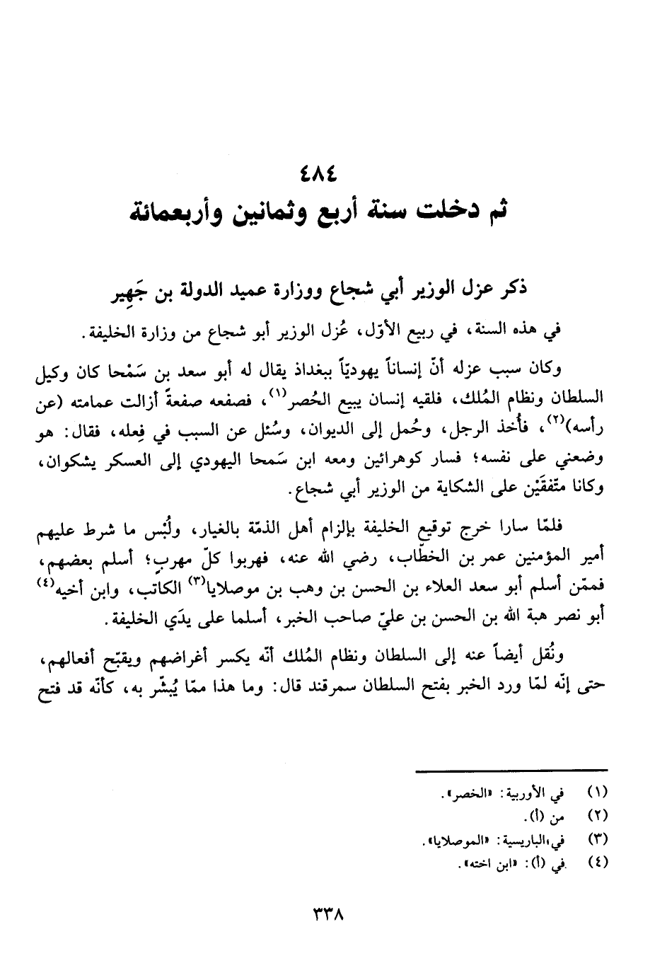 ثُمَّ دَخَلَتْ سَنَةُ أَرْبَعٍ وَثَمَانِينَ وَأَرْبَعِمِائَةٍ
