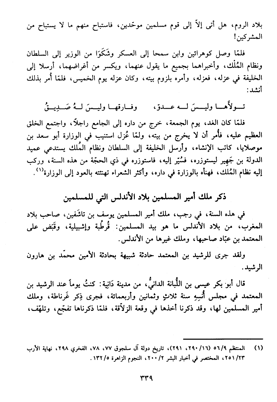 ذِكْرُ مُلْكِ أَمِيرِ الْمُسْلِمِينَ بِلَادَ الْأَنْدَلُسِ الَّتِي لِلْمُسْلِمِينَ