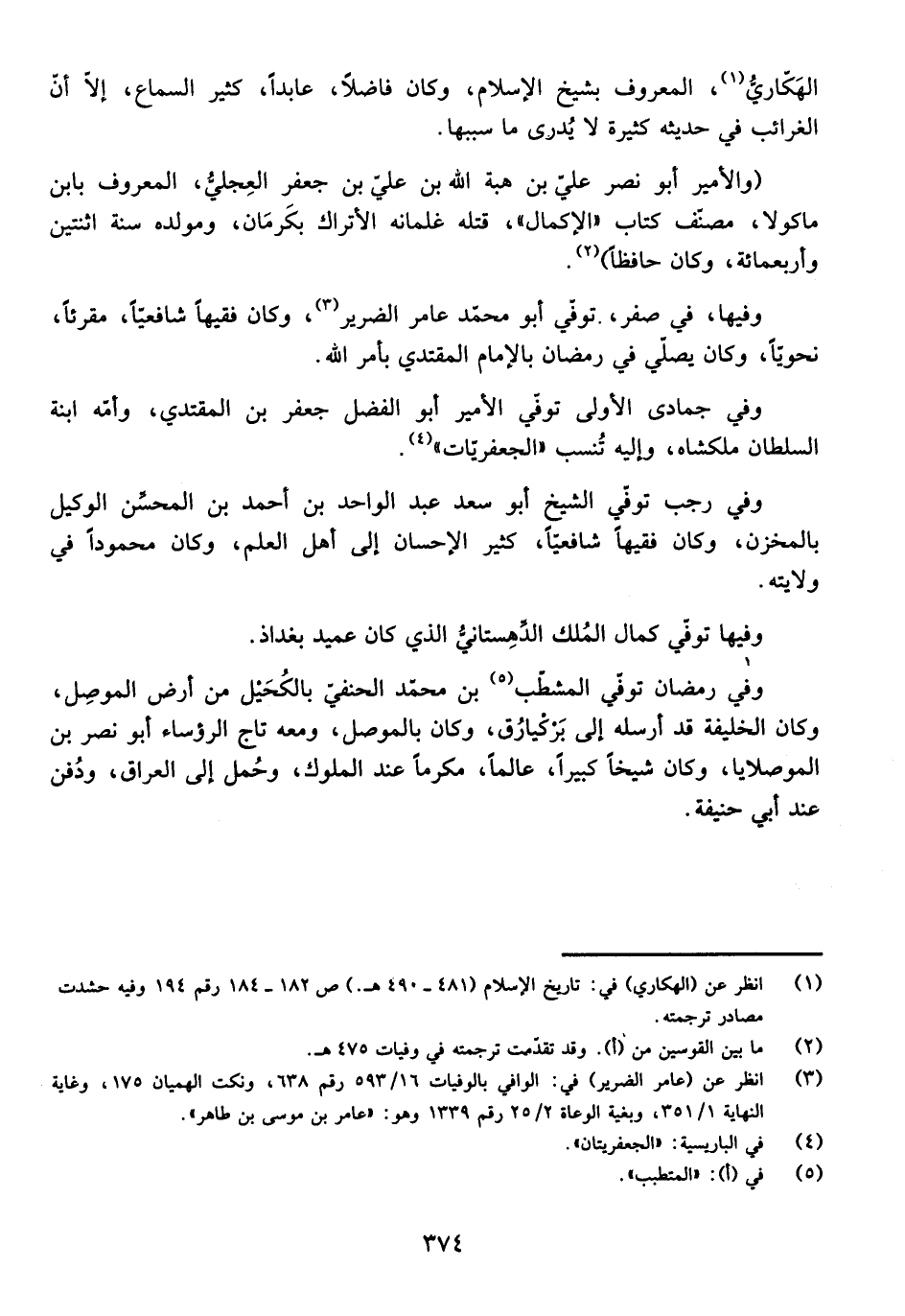 (وَالْأَمِيرُ أَبُو نَصْرٍ عَلِيُّ بْنُ هِبَةِ اللَّهِ بْنِ عَلِيِّ بْنِ جَعْفَرٍ الْعِجْلِيُّ، الْمَعْرُوفُ بِابْنِ مَاكُولَا، مُصَنِّفِ كِتَابِ " الْإِكْمَالِ "، قَتَلَهُ غِلْمَانُهُ الْأَتْرَاكُ بِكَرْمَانَ، وَمَوْلِدُهُ سَنَةَ اثْنَتَيْنِ وَأَرْبَعِمِائَةٍ، وَكَانَ حَافِظًا) .