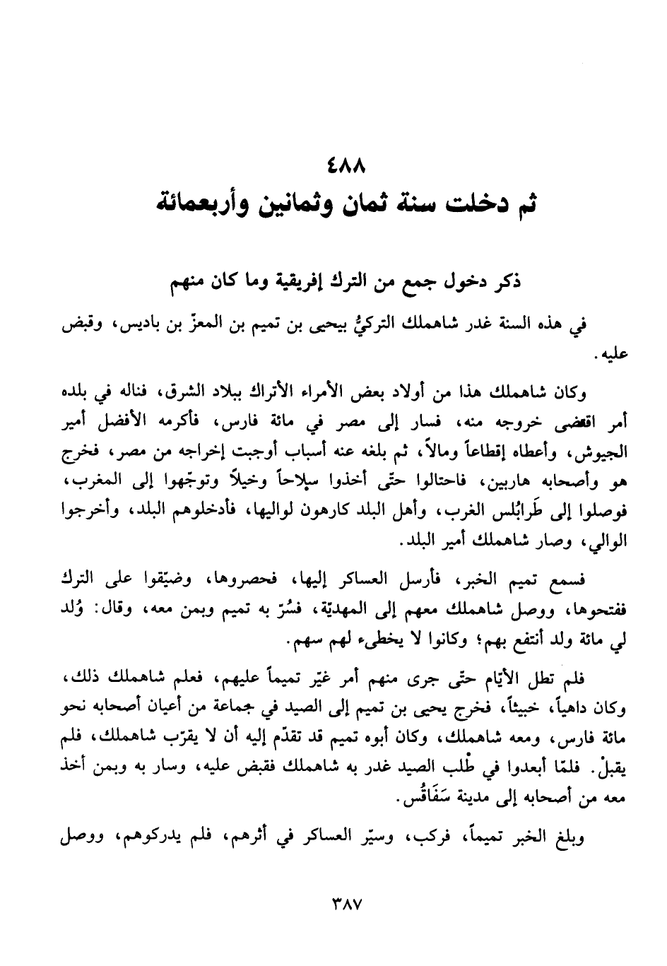 ثُمَّ دَخَلَتْ سَنَةُ ثَمَانٍ وَثَمَانِينَ وَأَرْبَعِمِائَةٍ