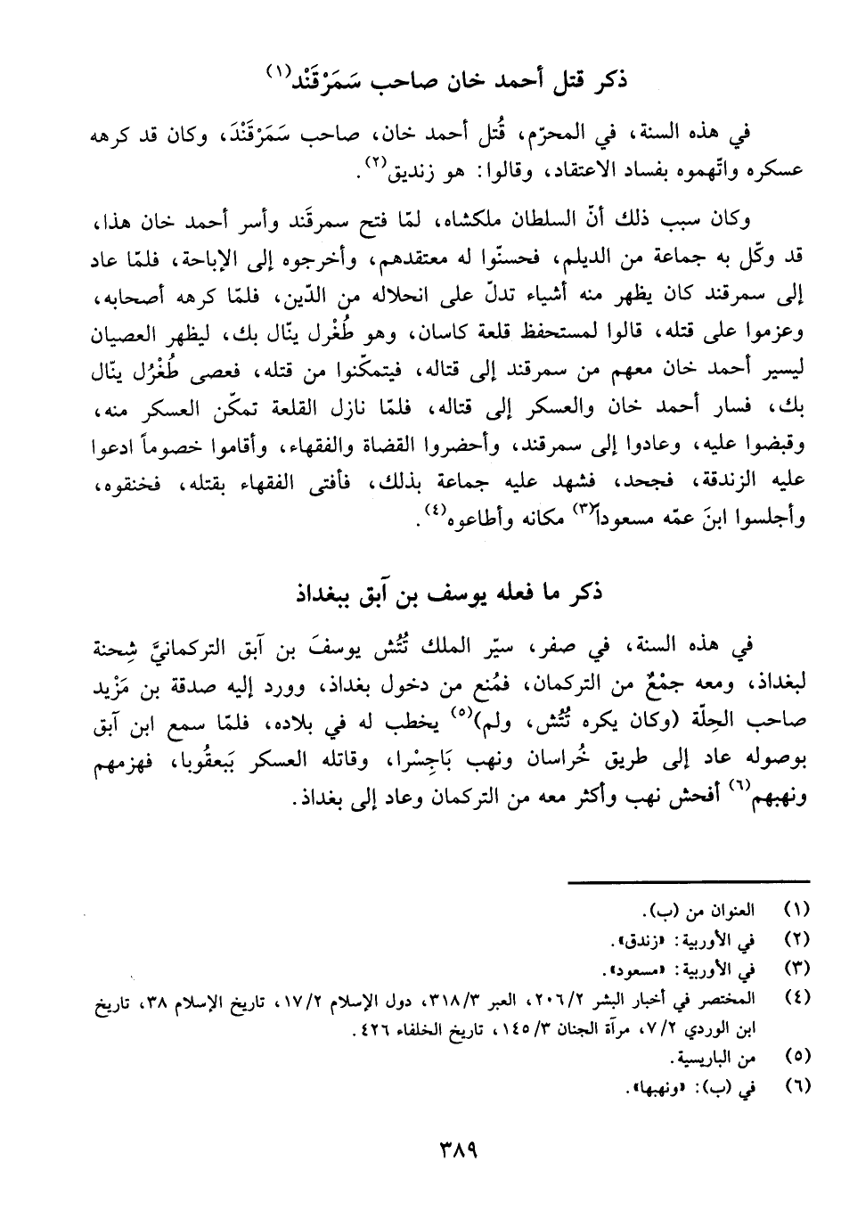 فِي هَذِهِ السَّنَةِ، فِي الْمُحَرَّمِ، قُتِلَ أَحْمَدُ خَانْ، صَاحِبُ سَمَرْقَنْدَ، وَكَانَ قَدْ كَرِهَهُ عَسْكَرُهُ وَاتَّهَمُوهُ بِفَسَادِ الِاعْتِقَادِ، وَقَالُوا: هُوَ زِنْدِيقٌ.