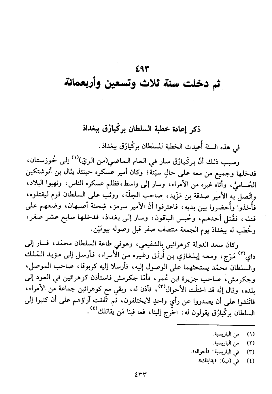 [ثُمَّ دَخَلَتْ سَنَةُ ثَلَاثٍ وَتِسْعِينَ وَأَرْبَعِمِائَةٍ]