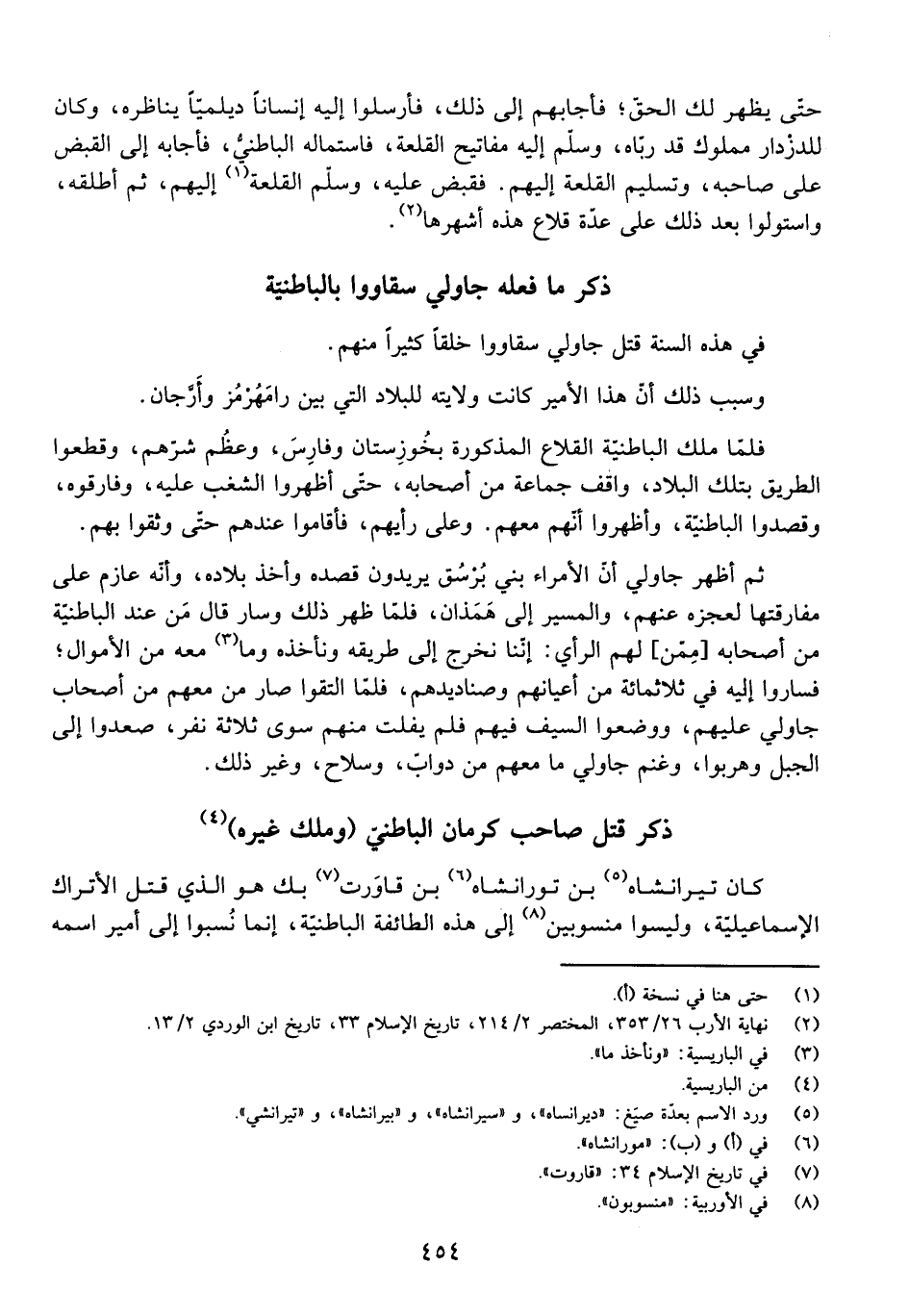 كَانَ تِيرَانْشَاهْ بْنُ تُورَانْشَاهْ بْنُ قَاوَرْتَ بِكْ هُوَ الَّذِي قَتَلَ الْأَتْرَاكَ الْإِسْمَاعِيلِيَّةَ، وَلَيْسُوا مَنْسُوبِينِ إِلَى هَذِهِ الطَّائِفَةِ الْبَاطِنِيَّةِ، إِنَّمَا نُسِبُوا إِلَى أَمِيرٍ اسْمُهُ