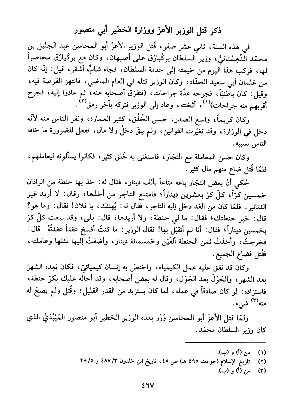 وَلَمَّا قُتِلَ الْأَعَزُّ أَبُو الْمَحَاسِنِ وَزَرَ بَعْدَهُ الْوَزِيرُ الْخَطِيرُ أَبُو مَنْصُورٍ الْمَيْبُذِيُّ الَّذِي كَانَ وَزِيرَ السُّلْطَانِ مُحَمَّدٍ.