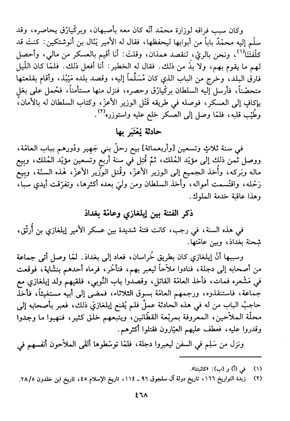 فِي هَذِهِ السَّنَةِ، فِي رَجَبٍ، كَانَتْ فِتْنَةٌ شَدِيدَةٌ بَيْنَ عَسْكَرِ الْأَمِيرِ إِيلْغَازِي بْنِ أُرْتُقَ، شِحْنَةِ بَغْدَاذَ، وَبَيْنَ عَامَّتِهَا.