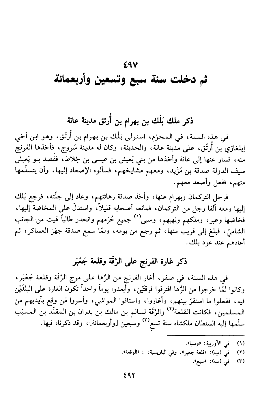 ثُمَّ دَخَلَتْ سَنَةُ سَبْعٍ وَتِسْعِينَ وَأَرْبَعِمِائَةٍ